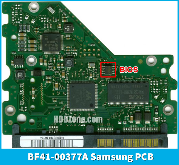 sul Samsung Scheda Elettronica BF41-00377A, il chip del BIOS si trova solitamente vicino al chip di controllo principale. Si presenta come un piccolo chip quadrato nero con un pacchetto a 8 pin. Si noti che, con i progressi nella tecnologia dei dischi rigidi, alcuni dischi rigidi potrebbero avere più chip BIOS (2-6), che devono essere sostituiti durante il trasferimento del firmware. E alcuni PCB hanno chip BIOS integrati all’interno del chip principale (il chip più grande della scheda), di solito con molti pin, ed è necessaria una certa quantità di tecnologia per sostituirli.